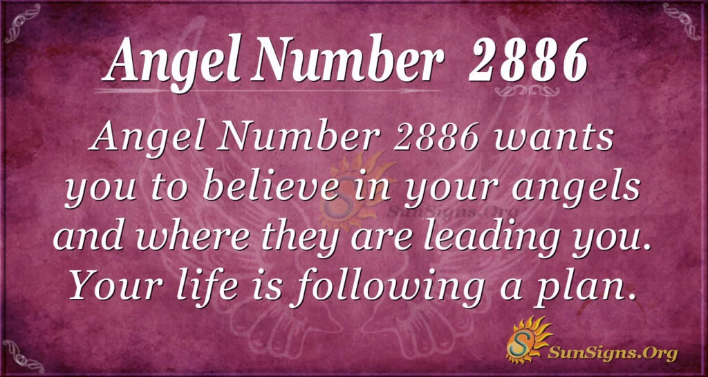 Remember that your life is following a plan, and if you feel something is not following the program you had so carefully put in place, you need to trust that it is, indeed, following it. Angel Number 2886 wants you to believe in your angels and where they are leading you.