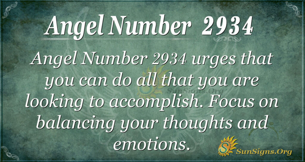 Your angels tell you through the appearance of Angel Number 2934 that you will be able to do all that you are looking to accomplish. You would be much better off remembering to always focus on your thoughts. Moreover, focus on your emotions and balance them out carefully.