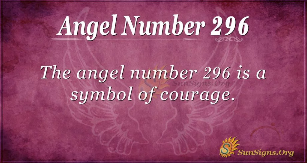 Angel number 296 is a symbol of courage. The angels send you a message saying that you should conquer the fear in your heart and stop being constantly afraid. If you have been in a recent attack that may be causing you to be afraid, angel number 2 is a sign that you need to seek help to be more courageous.