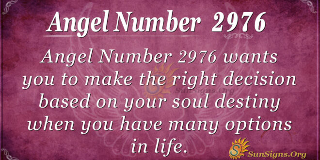 Your life will be entire of options to change and develop based on what you are going through. Even though it’s hard, Angel Number 2976 wants you to always make the right decision based on your soul destiny.