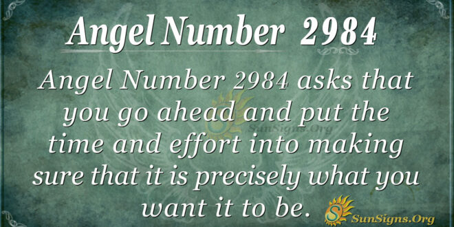 Your life is what you want it to be, so Angel Number 2984 asks that you put the time and effort into making sure that it is precisely what you want it to be.