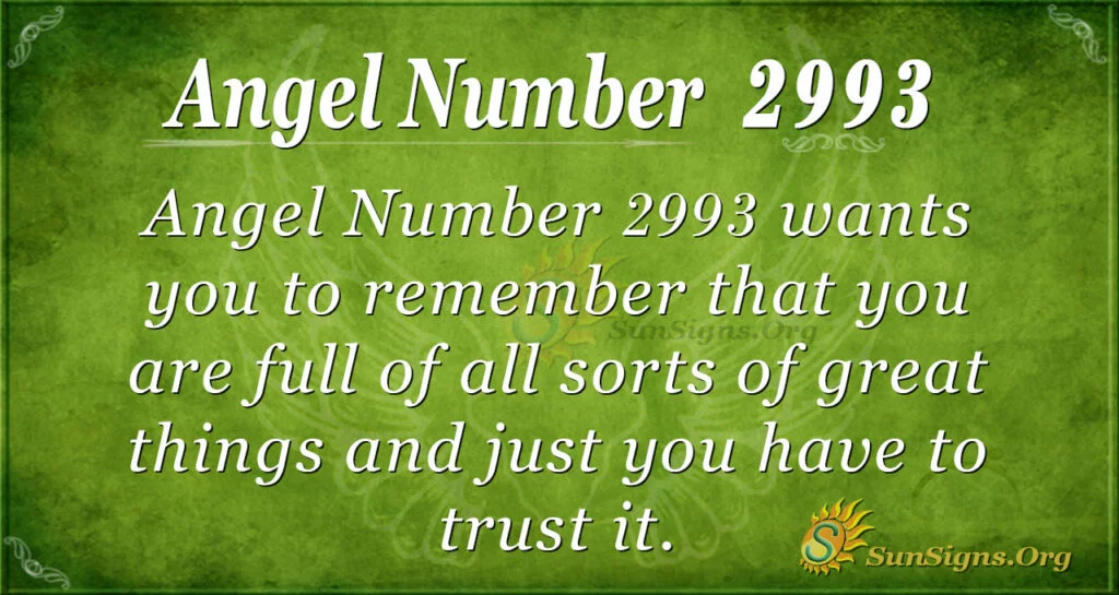 Things you should know about 2993 is that you should remember that you are full of all sorts of great things. Therefore, you should understand how that comes into play with the things you are drawn to and trust it. Besides, you should never allow someone to question your capability because you have the strength to make things happen.