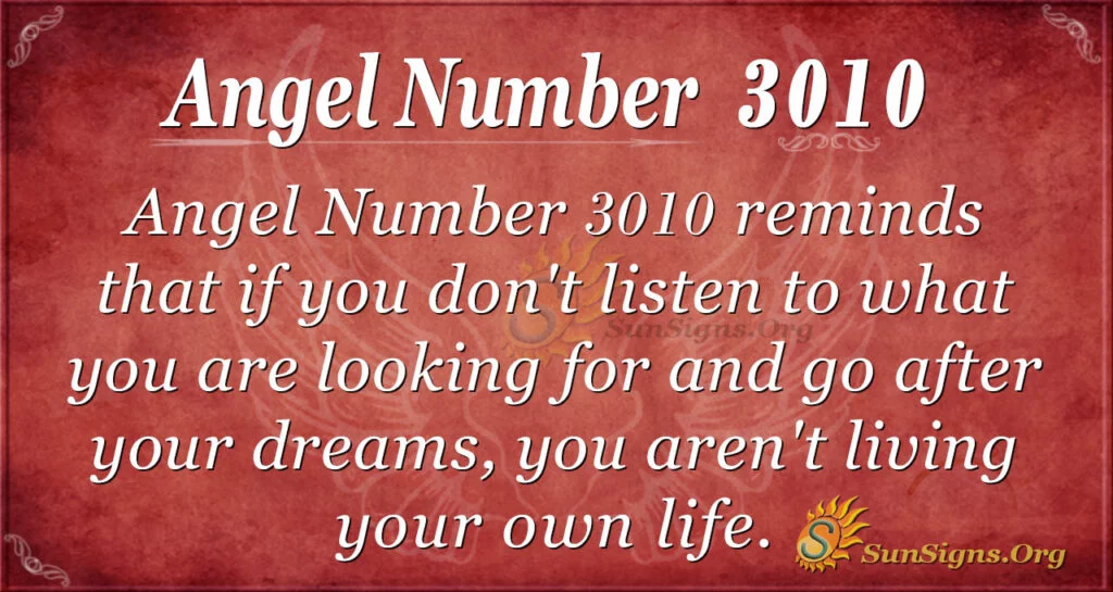 You need to remember that you can do whatever you want, but only if you keep listening to your thoughts and ideas. The definition of Angel Number 3010 reminds you that if you don’t listen to what you are looking for and go after your dreams, you aren’t living your own life.