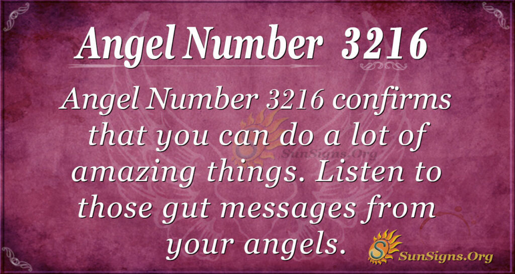 You are full of amazing things, and while it may be hard to understand just how you are going to go about the idea of getting everything done in your life, Angel Number 3216 wants you to see that you are going to be able to do a lot of amazing things by listening to those gut messages coming to you from your angels.