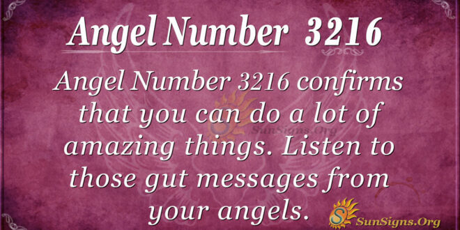 3216 angel number is telling you to be true to yourself. Do the things that bring light, joy, and happiness into your life. Follow your heart, and you will never go wrong. Listen to your instincts and do as they tell you.