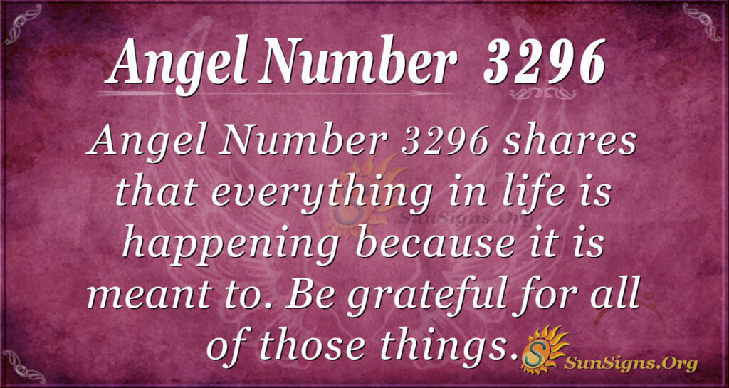 You need to be patient with yourself, others, and life. Angel Number 3296 shares that everything in life is happening because it is meant to, so remember to be grateful for all of those things and see that you’ll be able to understand the purpose before too long.