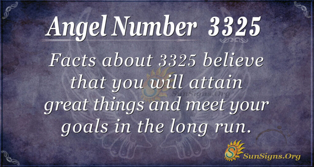The important thing is that you are always optimistic about tomorrow, even when today proves challenging. Facts about 3325 believe that you will attain great things and meet your goals in the long run.