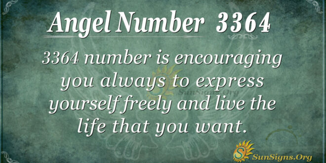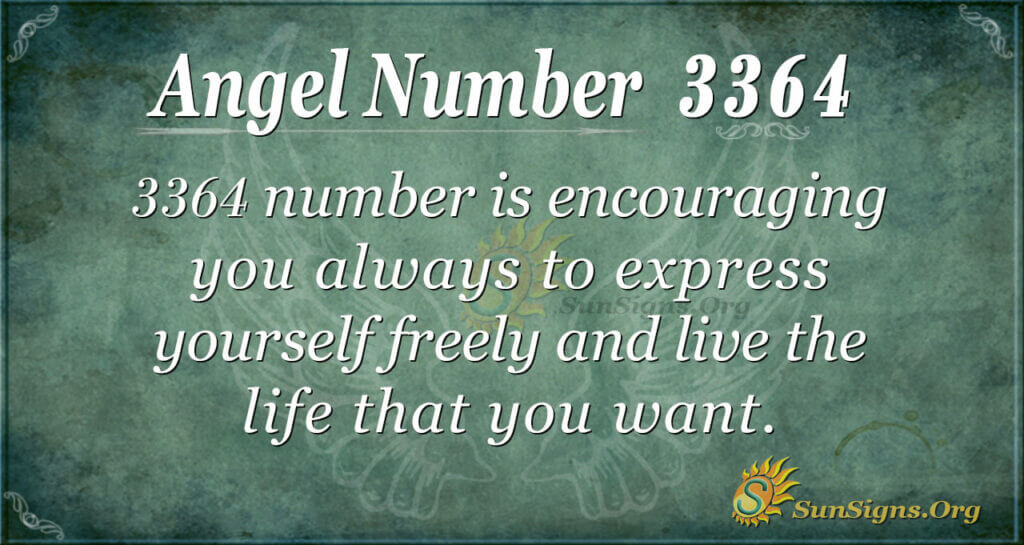 The number 3364 encourages you to always express yourself freely and live the life that you want. Live a life that makes you happy and surround yourself with positive people who help you grow.