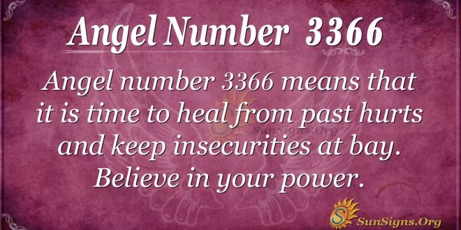 What does 3366 mean in angel numbers? Number 3366 in angel number 3366 means it is time to heal from past hurt and keep insecurities at bay. The number 3366 means further to suggest you remain patient. The healing journey isn’t for the faint at heart. Distractions from others will appear, not to mention rejection and hopelessness. The moment you heal your inner child, all shall be well with you.