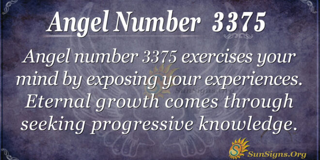 Angel number 3375 exercises your mind by exposing your experiences. Eternal growth comes through seeking progressive knowledge.
