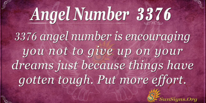 3376 angel number encourages you not to give up on your dreams just because things have gotten tough. Put more effort into reaching the finish line, and you will eventually get there.