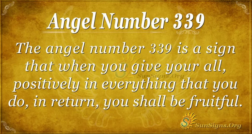 The divine number 339 is a sign that you must continue to live your life with purpose. The angels will guide and protect you. It is time to stop holding back and begin to give your full potential to everything you do. Living a life with purpose is essential, but sometimes fear grips us and holds us back.