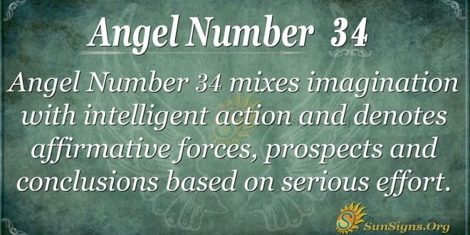 Angel number 34 mixes imagination with intelligent action and denotes affirmative forces, prospects, and conclusions based on severe effort.