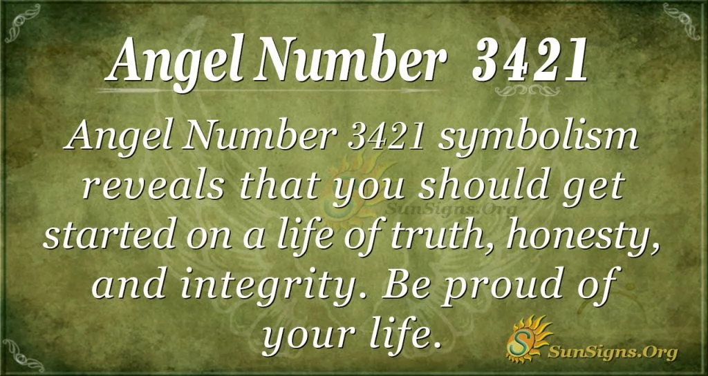 3421 symbolism reveals that your guardian angels encourage you to get started on a life of truth, honesty, and integrity. Live a life that makes the divine realm proud of you.