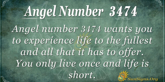 Angel Number 3474 encourages you to experience life to the fullest, embracing all it has to offer, because you only live once, and life is short. By sharing life, you will know what you want and what you do not wish to do.