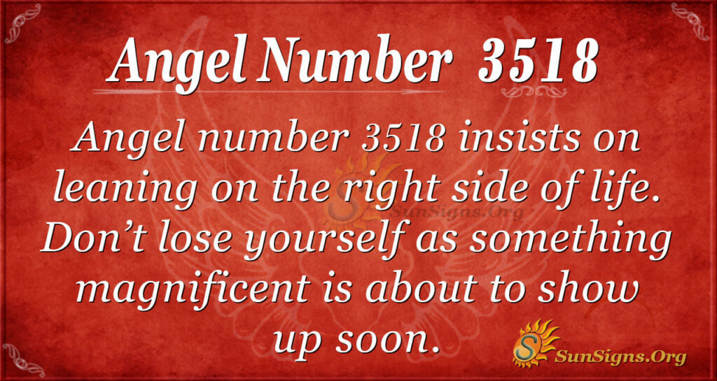 On the other hand, the spiritual meaning of 3518, similar to angel 318, encourages you to be honest in your path. Angels ask you to focus on your passion, for it is here where you will land on great things ahead.