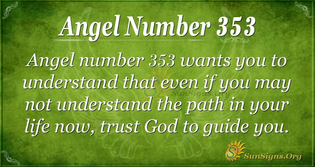 Angel number 353 wants you to understand that even if you may not understand the path in your life now, trust God to guide you and show you the way. Understand that fear is not good, and you must always have the courage and strength to motivate yourself. The angels tell you they are beside you, and you should never feel alone.