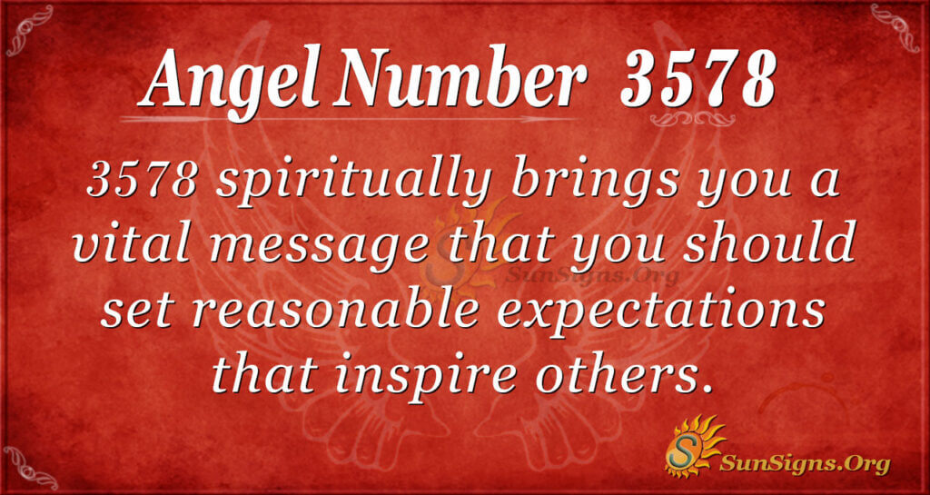 3578 spiritually brings you a vital message: you should set reasonable expectations that inspire others. Perhaps you have been too hard on others, expecting them to conform.