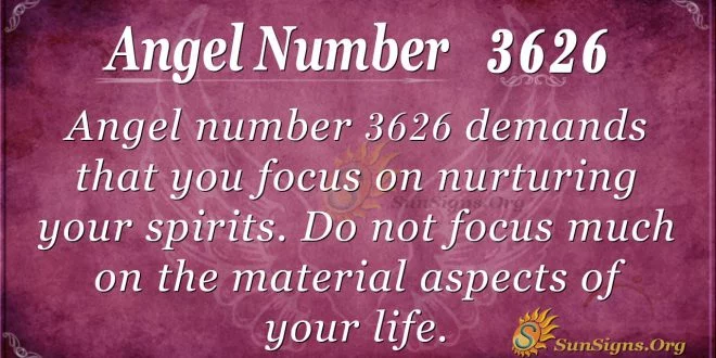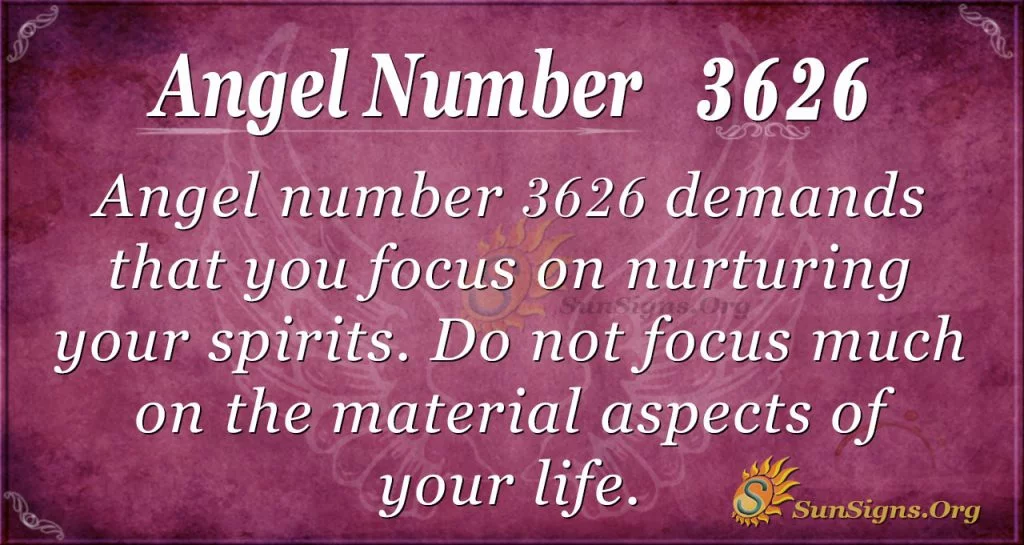 Angel Number 3626 is a reminder that you need to work on your life goals while nurturing your spiritual life. The moment you take care of your spirituality, you will be able to take care of your mental, physical, and emotional health. Use your talents and gifts to enter into a new spiritual dimension.