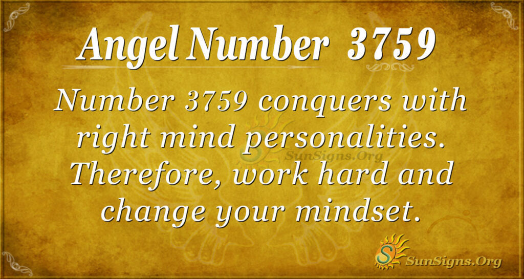 Numbers 3759 symbolizes personal power and intuition. Further, it relates to harmony and peace. The angels urge you to open your mind and recognize new opportunities in life. Also, develop a positive attitude that will propel you to success. To achieve all these aspects, make sure you’re in the right mind.