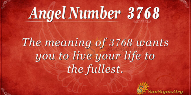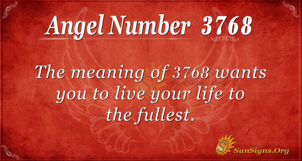 The meaning of 3768 is that you should live your life to the fullest. Do the things that make you happy and pursue your passions with enthusiasm.