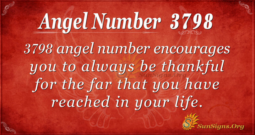 The 3798 angel number encourages you always to be thankful for the far you have reached. Enjoy every wonderful moment of your blessings.