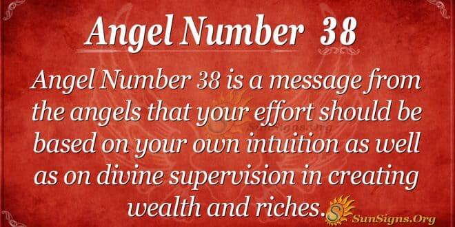 Angel Number 38 is a message from the angels that your effort should be based on your intuition and divine supervision in creating wealth and riches. This profusion of money will help you to give more to others, which will be returned to you in abundance.