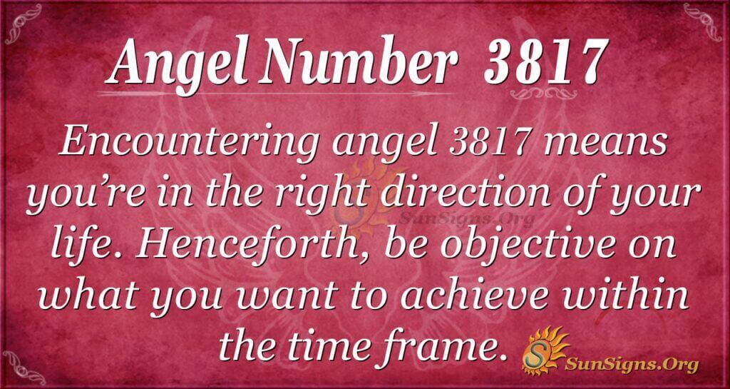 Encountering angel 3817 means you’re in the right direction in your life. Henceforth, be objective on what you want to achieve within the time frame. Change how you perceive the world and nature. Plus, the acceptance of results improves your relationship. Furthermore, you gain more power to execute your mandates. However, flexibility, honesty, and trust are what accord good leadership.