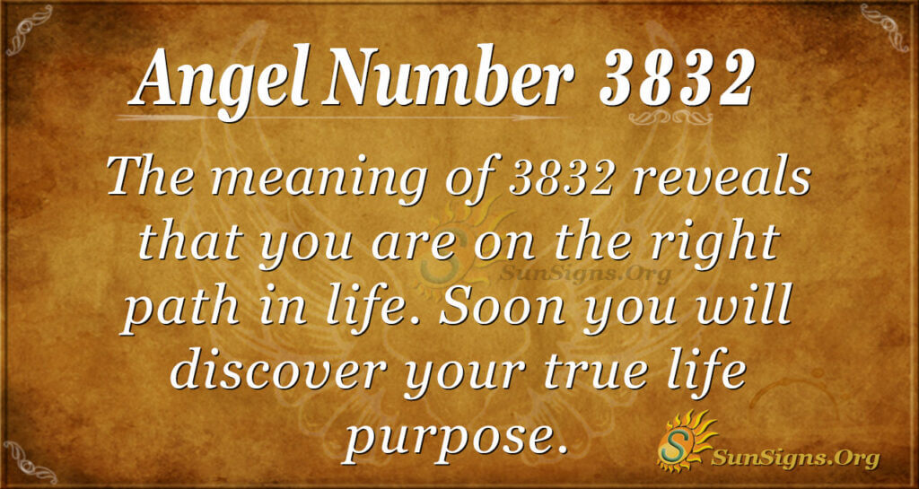 The meaning of 3832 reveals that you are on the right path in life. Soon, you will discover your true life purpose. Seek the guidance of your guardian angels in everything that you do. Learn to also depend on your loved ones because they are your support system.