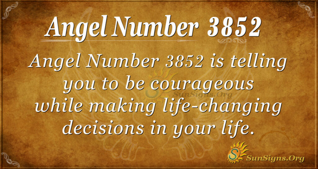 Angel Number 3852 encourages you to be courageous when making life-changing decisions. Ensure that you are sufficiently aware at this time. Seek more clarity and information before making a decision.