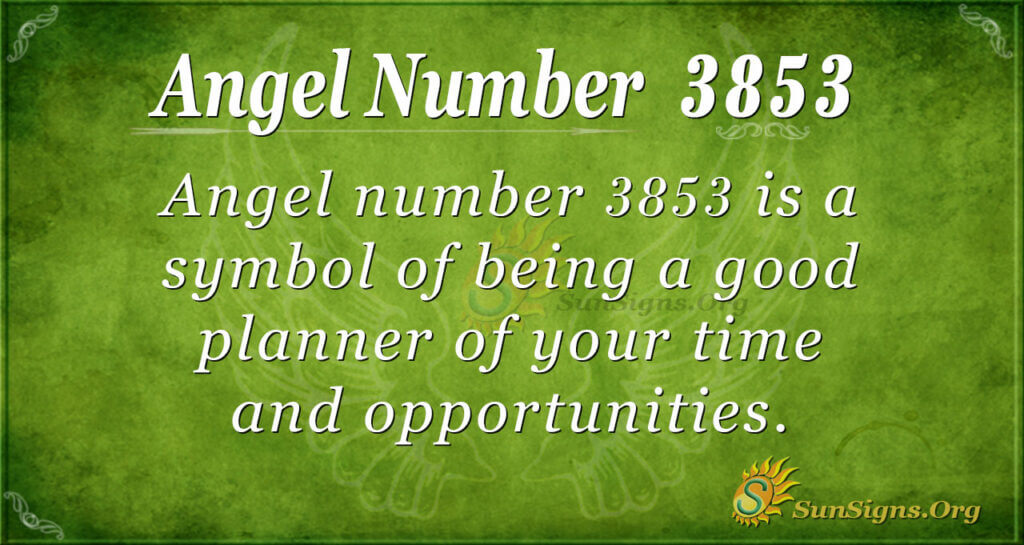 Angel number 3853 symbolizes being a good planner of your time and opportunities. Use every chance you have to make a difference. Make a difference by involving yourself in community-building activities, and it will be a form of giving back to society.