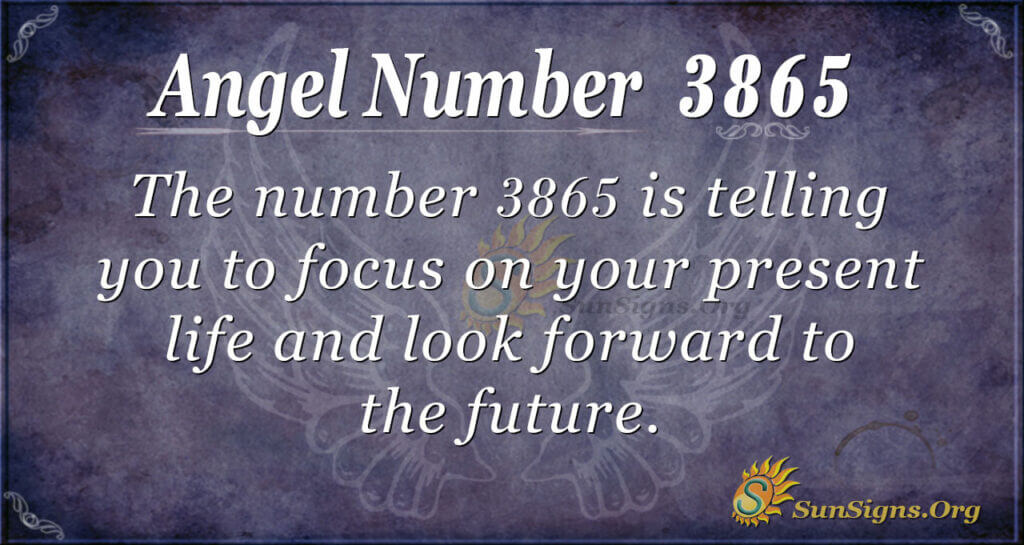 The number 3865 tells you to focus on your present life and look forward to the future. Concentrate on moving forward and eliminate all negativity from your life. Embrace positivity, and the universe will send positive energies your way. Eliminate unhealthy habits in your life and cultivate new, beneficial ones.