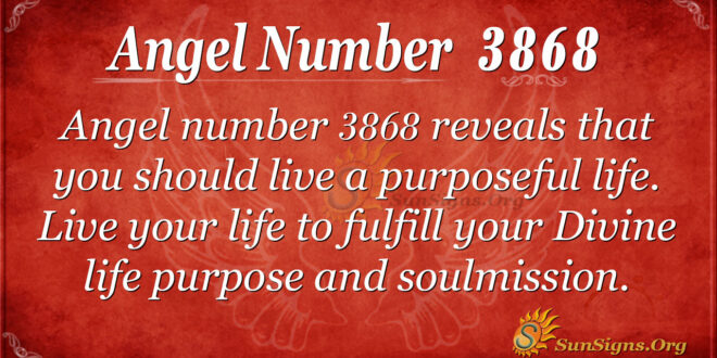 The meaning of 3868 reveals that you should live a purposeful life. Live your life with intention, and you will fulfill your Divine life purpose and soul mission. Ensure that you are doing something worthwhile in your life, as life is short.
