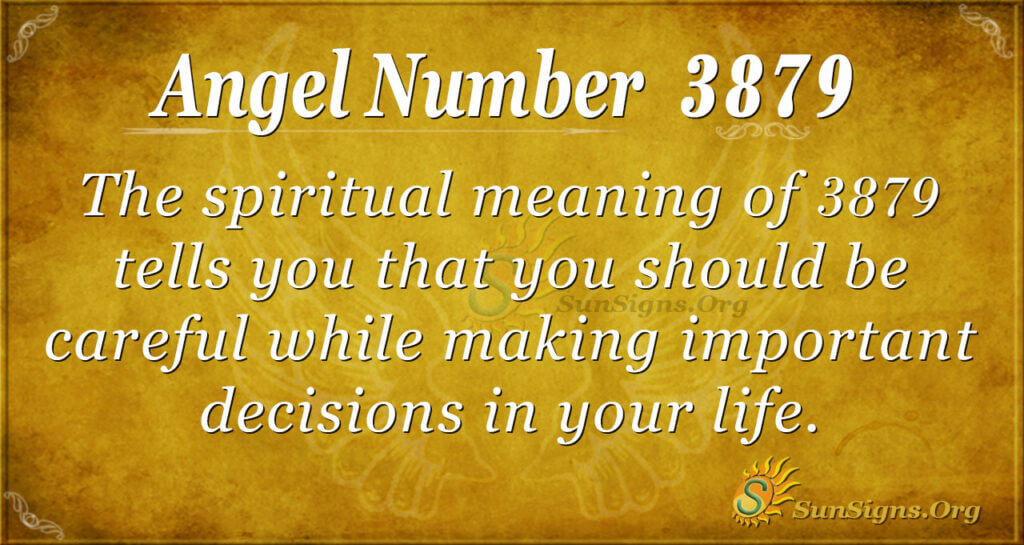 You should not die alone in darkness when you can quickly get in touch with the angels. 3879 Symbolism suggests that you should discuss your plans with them. Tell them what you want in life and where you feel stuck. Their work is to help you succeed in life.