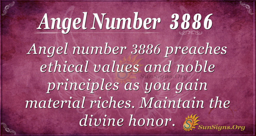 A cruel heart thinks of revenge and evil. Thus, you will use your money to create bad things for others. On the contrary, 3886 shows you the path of light. Consequently, you will experience harmony from the divine teachings.