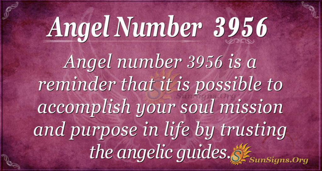 The actual influence of the 3956 angel number is a reminder that it is possible to accomplish your soul mission and purpose in life. Trust and believe that the angelic guides have answered your prayers. Continue to pursue your ambitions without giving up.