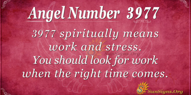 3977 spiritually means work and stress. You should look for work when the right time comes. Thus, peruse the job openings from different institutions. Afterward, decide on the ones you will apply. Be dedicated and work hard if you secure a position. Additionally, do everything to secure that job. It will help you become stable.