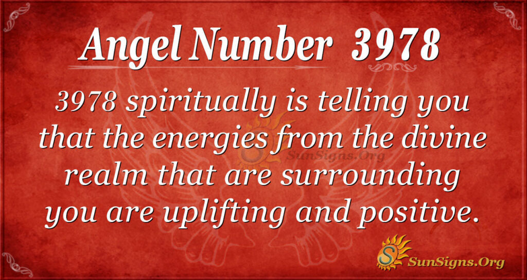 3978 spiritually tells you that the energies from the divine realm surrounding you are uplifting and positive. Your guardian angels assure you that your plans and ideas will yield favorable results.