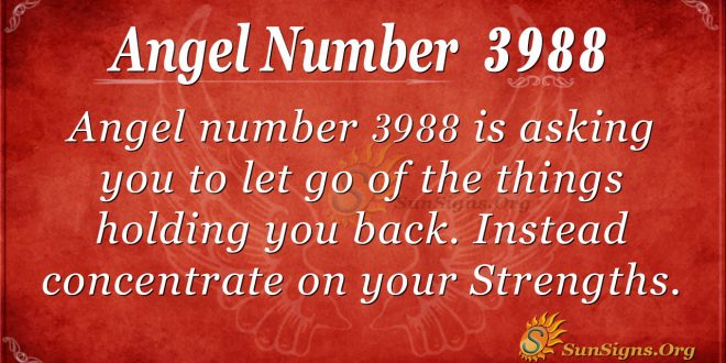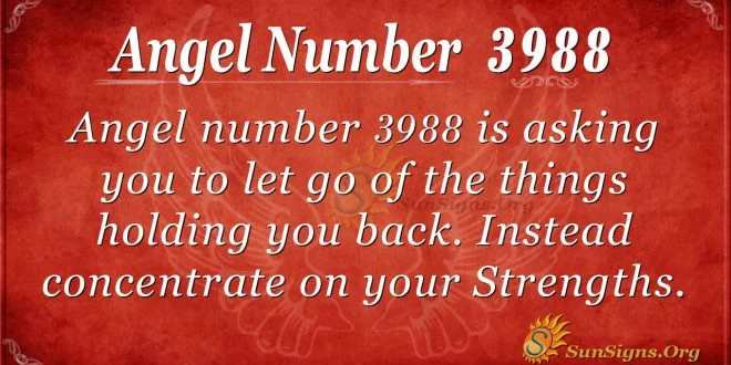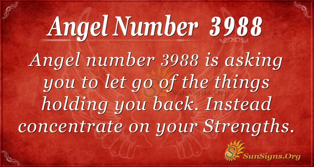 Seeing 3988 everywhere is a sign from the angels for you to realize that your life has a purpose. Moreover, you have a unique talent and ability to impact yourself and those around you. Number 3988 in your life shows that you are underutilizing your skills or putting too much focus on things that do not matter.