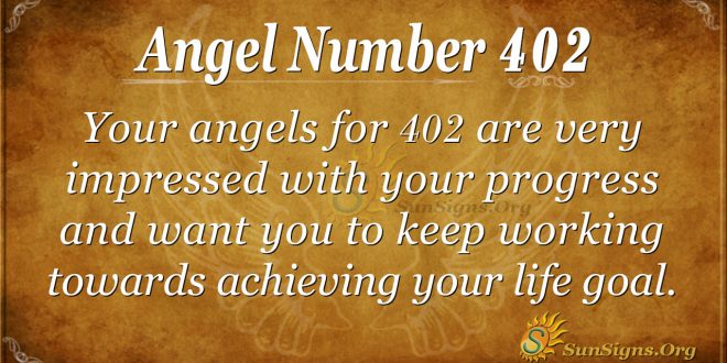 Number 40 and 42 are a further message to keep up the fantastic work you have been doing. Your angels for 402 are very impressed with your progress and want you to keep working toward achieving your life goal, as you have been doing.