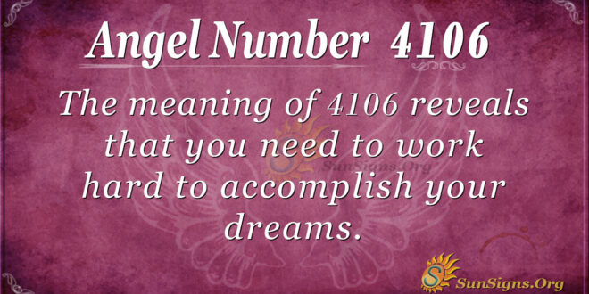 This angel number brings good luck to your life. There is nothing more appealing than knowing your capabilities. The meaning of 4106 suggests that you need to work diligently to achieve your dreams. As much as you support others, use your gifts to improve your life.