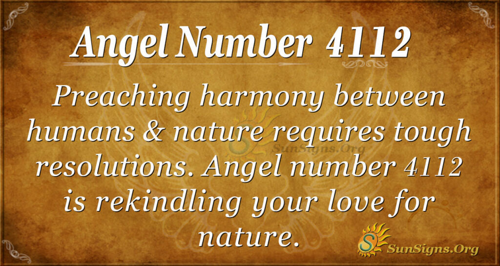 Preaching harmony between humans and nature requires tough resolutions. Angel number 4112 is rekindling your love for nature.