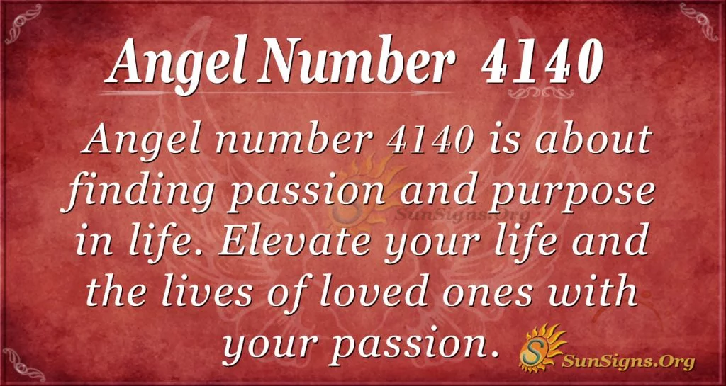 Your guardian angels use the number 4140 to let you know that you need to find your passion and purpose in life. Your career can be your passion, or your passion can be your career. It is upon you to figure out if what you are doing is your passion. If you are not passionate about whatever you are doing, it is time to move on and figure out what you are passionate about.
