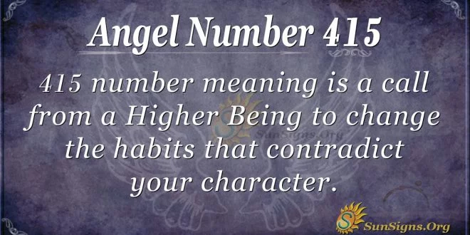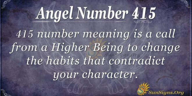 415 number meaning is a call from a Higher Being to change the habits that contradict your character. Your lifestyle has been unacceptable. You are deadweight to your country’s economy; it’s time to change that. Stop gambling with your life and start paying your taxes. Stop throwing tantrums and get your life together.