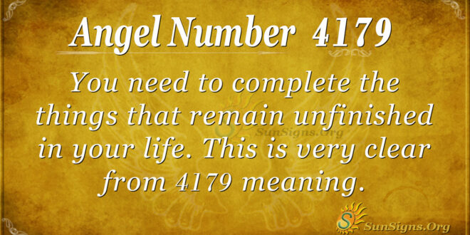 4179 Symbolism does not only refer to the things you plan to complete. Life is continuously an unfinished business. Do not take comfort in your laurels; do not quit. Never stop trying to make the world a better place. This forms part of your unfinished business.