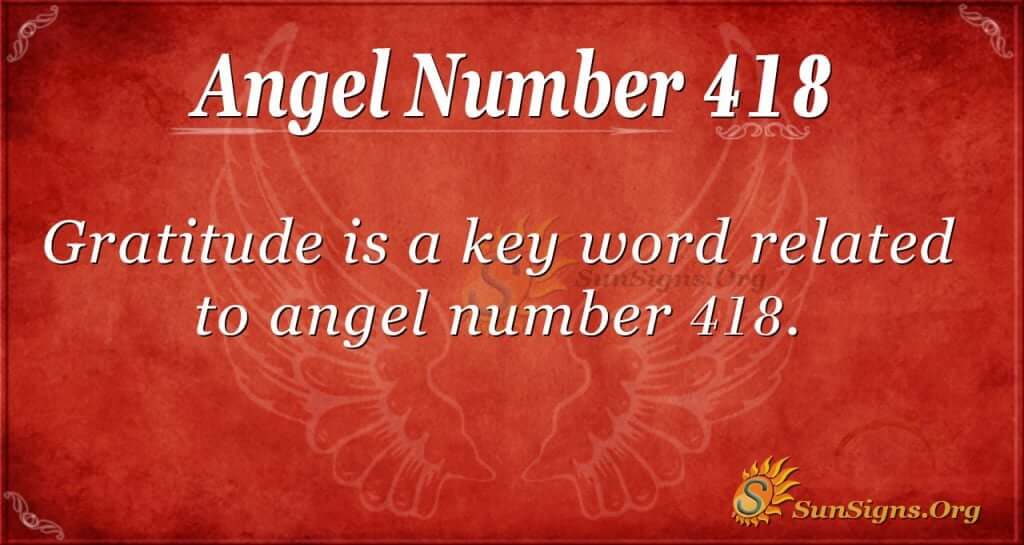 Positivity is stamped by 418. Good things are about to come. The dawn is here. The angel numbers say you have been shortlisted for prosperity. You are about to come to a lot of luck. You are advised to use your resources wisely. Do not make bad investments.