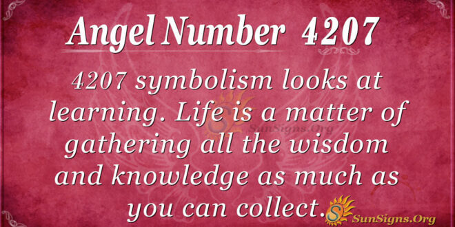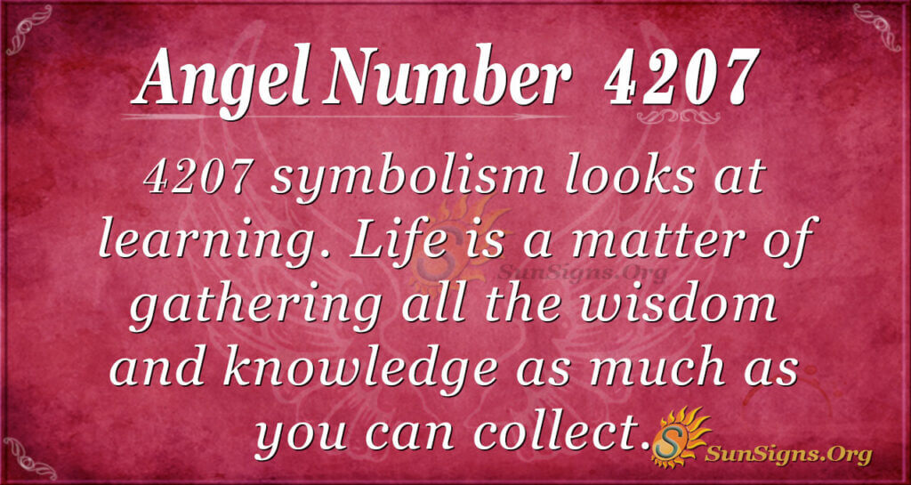 4207 symbolism looks at learning. Life is a matter of gathering as much wisdom and knowledge as possible. Moreover, learning never ends. Every new day allows you to learn something new. Thus, you can never be too wise and knowledgeable about life.