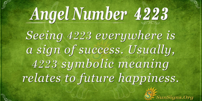 Seeing 4223 everywhere is a sign of success. Usually, 4223 symbolic meaning relates to future happiness. This is good news that the angels want you to know. If you were almost giving up, do not! Keep working hard, and put extra effort into all that you do.