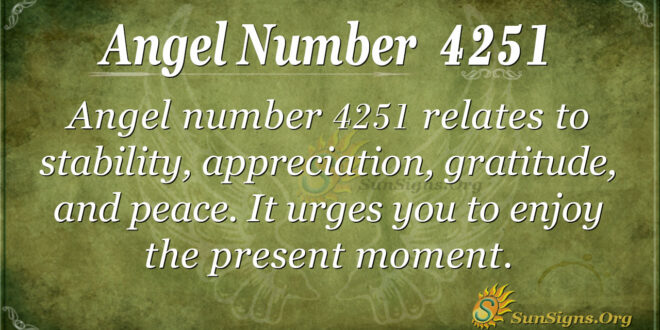 Next, what does 4251 mean symbolically? Angel number 4251 is a symbol of appreciation and gratitude. It encourages you to enjoy your current blessings. Then, number 4251 represents an ideal person. This person is content with the way things are at the moment.