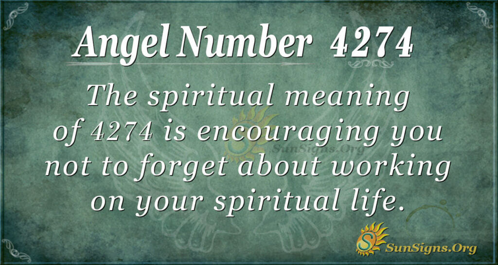 Your guardian angels are asking you to practice mindfulness in your love life. 4274, meaning it encourages you to give your partner your undivided attention when you are together. Endeavor to spend quality time with your partner or spouse without distractions. You can do each other a favor by switching off your phones when you want to spend quality time together.